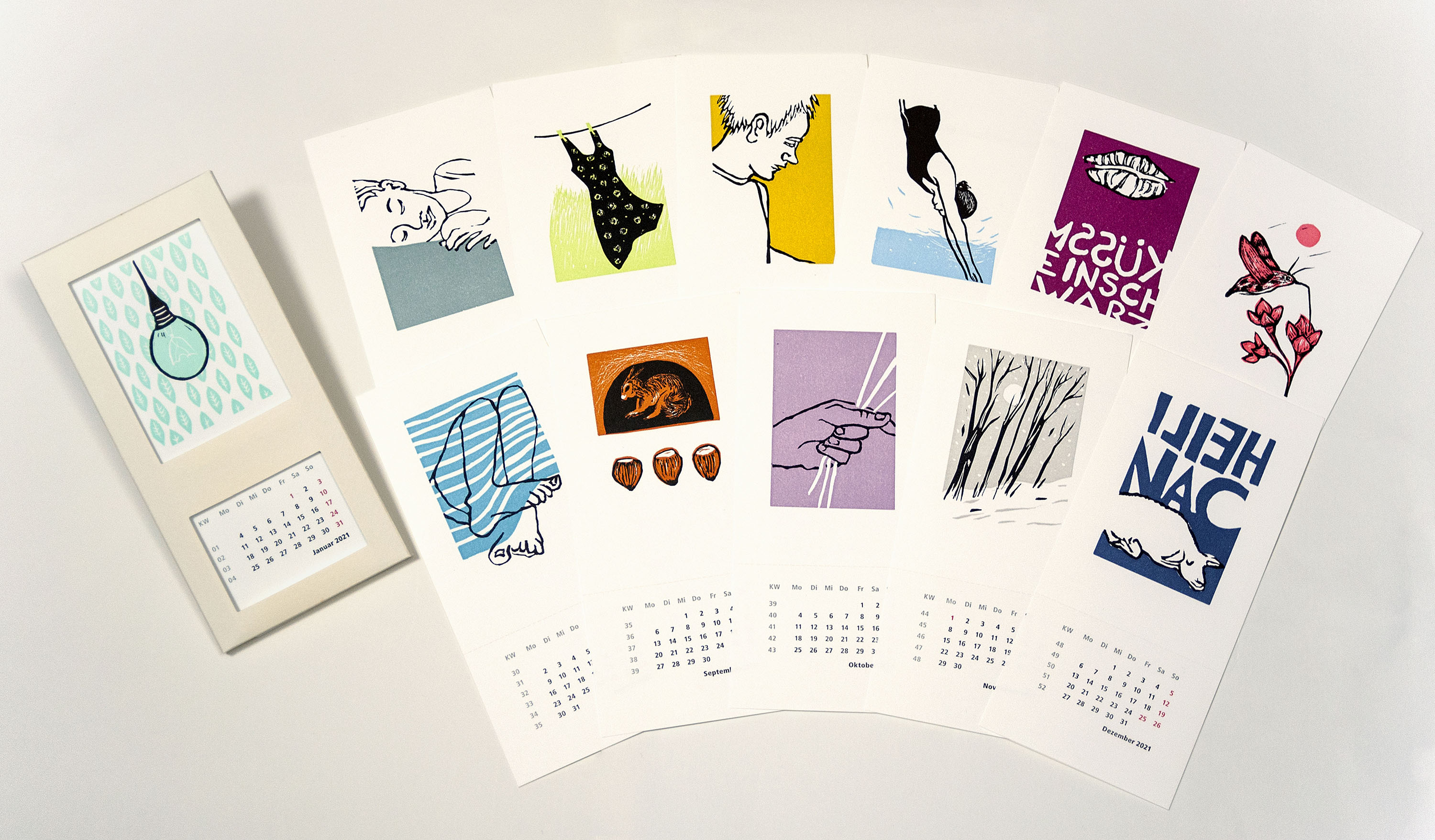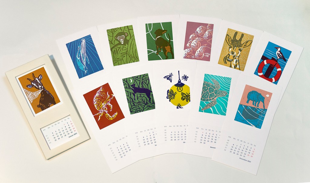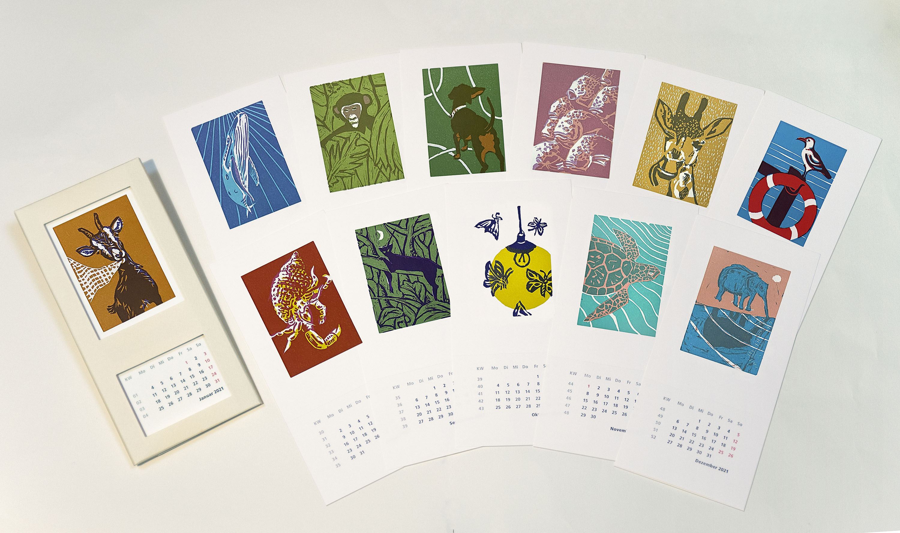 Wand- und Tischkalender, mit zwölf Motiven, abtrennbare Kalendarien, Format 10,5 x 22,5 cm