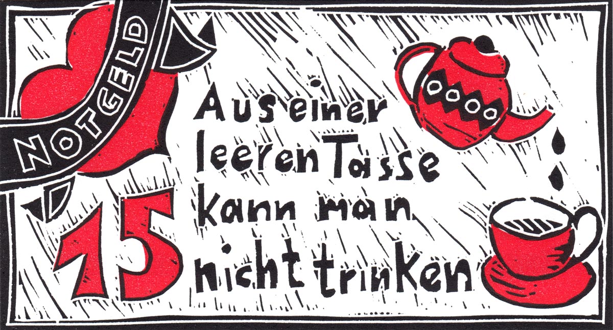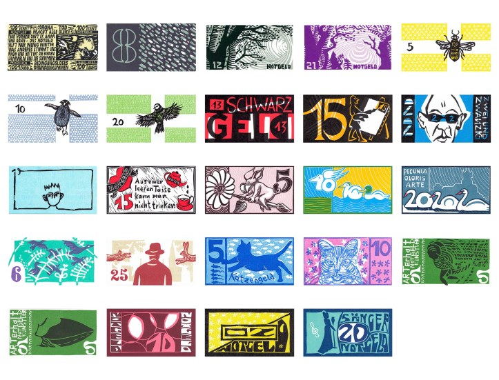 Künstler der Region drucken Notgeld um auf die bedrohliche Lage der Kulturschaffenden aufmerksam zu machen.